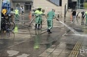 한국현대미술신문 배윤섭 기자 | 수원시 팔달구은 지난 3일 수원역 광장 및 수원역 환승센터 일원에서 합동 환경정비를 실시했다. 이번 정비는 수원시 주관으로 진행됐으며, 김현수 수원시 제1부시장을 비롯해 권선·팔달 환경위생과, 안전건설과, 평동,서둔.매산동 행정복지센터, 수원도시공사, 수원다시서기노숙인종합지원센터 등 유관기관 관계자들이 참여했다. 참여자들은 수원역 광장과 환승센터 일대에 적치된 폐기물을 수거하고 살수차를 활용한 물청소를 실시하는 등 환경 개선 활동에 힘을 모았으며, 고압세척장비를 활용해 보도 표면은 물론 오염이 쉽게 누적되는 구간까지 세심하게 세척 작업을 진행하여 쾌적한 거리 환경 조성에 앞장섰다. 팔달구 관계자는 “앞으로도 지속적인 환경정비를 통해 깨끗한 거리환경을 조성·유지해 나가겠다”고 밝혔다.