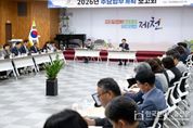 한국현대미술신문 신정은 기자 | 제천시는 지난 13일 시청 청풍호실에서 김창규 시장 주재로 국장 및 직속기관장, 부서장이 참석한 가운데 2026년 주요업무계획 보고회를 개최했다. 이번 보고회는 민선8기 후반기 시점에 시가 역점적으로 추진해왔던 사업 성과를 돌아보고, 시정을 이끌어갈 부서별 주요업무계획 보고를 주요 내용으로 진행됐다, 내년도 시정방향은 단기적으로 지금까지 구축해 온 성장 발판을 통해 시정 분야별 연계효과를 더욱더 확산시키고, 공약사업 및 핵심사업의 차질 없는 마무리, 시민이 체감하는 변화 완성, 혁신적 정책 발굴 등에 집중해 나가고, 장기적으로 그동안 시가 추진해 온 투자유치, 권역별 관광개발을 두축으로 투자유치 4조원 달성, 1,500만 문화․관광시대를 목표로 두 배 잘사는 경제 도시 제천 실현 기반을 착실히 완수해 나간다는 것이다. 김창규 제천시장은 “민선8기 4년차로 역동적이고 새로운 경제도시 제천을 만들기 위해 쉼 없이 달려왔다면서, 시간이 지나면서 시정이 결실을 맺고 눈에 뛰는 변화를 이뤄낸 것은 시민분들과 전 공직자가 한마음으로 노력한 결과”라며“2026년에도 제천의 미래