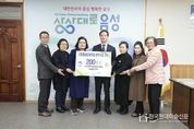 한국현대미술신문 신정은 기자 | (사)고향주부모임 음성군연합회는 지난 1일 음성군청을 방문해 지역 인재 육성을 위해 (재)음성군장학회에 장학금 200만원을 기탁했다 (사)고향주부모임 음성군연합회는 농협의 여성 조직 육성단체로, 2018년 첫 기탁을 시작으로 이번까지 총 600만 원의 장학금을 후원했다. 아침밥 먹기 운동, 사회복지시설에 명절 송편 나눔 행사 등 지역사회 공헌 활동에도 지속적으로 앞장서고 있다. 이번 장학금은 지난 9월 열린 ‘2025 음성명작페스티벌’에서 음성명작米(쌀)를 홍보하기 위해 농협음성군지부와 공동 기획한 인절미 판매의 수익금 전액으로 조성됐다. 이날 기탁식에는 고윤종 농협음성군지부장이 함께 참석해 의미를 더했다. 원어연 회장은 “지역의 대표 작물인 음성명작米를 널리 알리고, 성공적인 축제를 위해 기쁜 마음으로 인절미 판매에 참여했다”며 “이번 수익금이 학생들이 경제적 어려움 없이 다양한 분야에서 자신의 꿈을 펼치는 데 도움이 되길 바란다”고 말했다. 조병옥 이사장은 “지역 농산물 홍보와 더불어 지역 인재 양성에 대한 꾸준히 관심에 감사드린다”며 “따뜻한 마음으로 기탁해 주