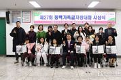 한국현대미술신문 정소영 기자 | 해운대구는 12월 3일, ‘제27회 동백가족글자랑대회 시상식’을 개최했다. 동백가족글자랑대회는 가족의 소중한 이야기를 글로 나누며 세대 간 소통을 이어가는 해운대구 대표 글쓰기 축제로 자리매김해 왔다. 올해 대회에는 초등부 38명, 일반부 80명 등 총 118명이 참가해 정성스러운 작품을 출품했으며, 이 가운데 우수작으로 선정된 초등부 3명, 일반부 3명 총 6명의 수상자와 가족들이 함께 시상식에 참석해 의미 있는 시간을 가졌다. 행사에서는 심사위원의 심사평과 함께 수상작 낭독이 진행됐고, 가족 간의 따뜻한 정을 담아낸 작품들이 참석자들의 큰 공감을 얻었다. 김성수 해운대구청장은 “동백가족글자랑대회는 가족의 사랑과 이야기를 글로 표현하는 뜻깊은 행사”라며 “앞으로도 많은 가족이 함께 참여해 해운대구의 따뜻한 가족 문화를 더욱 넓혀가길 바란다”고 말했다.