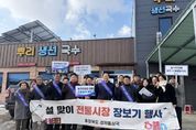 한국현대미술신문 신정은 기자 | 충북도 경제통상국은 2일 옥천군을 찾아 설맞이 전통시장 장보기 행사를 진행하고, 복지시설을 방문하여 소외된 이웃을 위로했다. 특히, 장보기 행사가 진행된 옥천 청산시장은 1930년 개설되어 90여 년의 역사를 간직한 시장으로, 현재까지도 2일과 7일에 5일장이 열리고 있다. 이날 이제승 경제통상국장을 비롯한 직원 25명은 시장 곳곳을 둘러보며 제수용품과 지역 농·축산물을 구입하는 것은 물론 상인들과 소통하고 현장의 애로사항을 청취했다. 건전한 소비문화 정착을 위한 물가 안정 캠페인도 함께 펼쳤다. 아울러, 옥천읍 소재 노인복지시설인 옥천꽃동네 성모노인요양원을 방문해 위문품을 전달하고 따뜻한 나눔의 시간도 가졌다. 이제승 도 경제통상국장은 “이번 장보기 행사가 지역경제의 최일선에 있는 전통시장 활력 제고에 조금이나마 보탬이 됐기를 바란다”며 “도민 여러분께서도 설을 맞아 가족과 함께 전통시장을 방문하여 지역경제에 활기를 불어넣어 주시길 당부드린다”고 말했다.