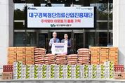 한국현대미술신문 정소영 기자 | 대구경북첨단의료산업진흥재단은 지난 29일, 저소득 취약계층을 위해 10kg 백미 50포, 샤인머스켓 50박스, 라면 50박스, 간이소화기 50개를 동구청에 기탁했다. 이번 기탁은 재단 임직원들이 대구 동구의 동서시장을 방문해 명절 성수품과 생필품 등을 직접 구매한 후, 해당 물품을 동구청에 전달하는 방식으로 진행됐다. 기탁한 물품은 동구 내 취약계층과 복지 사각지대 이웃들에게 전달 될 예정이다. 박구선 이사장은 “작은 정성이지만 어려운 이웃들이 따뜻한 명절을 보내는 데 도움이 되기를 바란다”고 말했다. 윤석준 동구청장은 “추석을 맞아 이웃을 먼저 생각해주신 대구경북첨단의료산업진흥재단에 깊은 감사를 드린다”며 “기탁해주신 물품은 도움이 필요한 분들께 소중히 전달하겠다”고 했다.