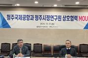 한국현대미술신문 신정은 기자 | 청주시정연구원과 한국공항공사 청주공항 은 1일 청주공항에서 지역 교통·관광·산업 활성화 및 공항 운영 기능 강화를 위한 상호 협력 업무협약(MOU)을 체결했다. 이번 협약은 두 기관이 보유한 인적·물적 자원을 활용해 지역 정책 연구 역량을 강화하고, 공항과 지역 간 연계 수준을 높여 상호 발전을 도모하기 위해 마련됐다. 협약의 주요 내용은 지역 교통·관광·산업 활성화 정책 연구와 공항 운영 여건 개선 및 기능 강화 협력 등으로 공항–지역 연계 정책·사업 기획 및 공항 서비스 품질 향상 조사·연구 등에 폭 넓게 쓰일 예정이다. 원광희 청주시정연구원장은 “충청메가시티 관문으로서 청주공항이 단순히 게이트웨이로서의 역할을 넘어 도시의 고부가가치를 창출하는 데 일조할 수 있도록 협력 연구를 추진하고 시민 체감 성과를 도출하는 데 힘쓰겠다”고 말했다. 두 기관은 이번 협약을 계기로 공동 연구과제 발굴, 협의체 운영 등 실질적 협력 활동을 지속적으로 추진해 나갈 계획이다.