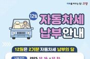 한국현대미술신문 배윤섭 기자 | 고양특례시 일산동구는 2025년 제2기분 자동차세 총 69,572건, 약 115억 원을 부과하고, 지난 12일 고지서를 발송했다고 밝혔다. 자동차세 납부 대상은 2025년 12월 1일 기준 차량 소유자(자동차·이륜차·기계 장비 등)로, 차량 운행 여부와 관계없이 자동차등록원부상 명의자에게 부과된다. 자동차세는 후납 방식으로 올해 7월 1일부터 12월 31일까지의 자동차 보유기간에 따라 일할 계산돼 부과된다. 납부 기한은 12월 16일부터 31일까지이며 위택스, 지로, ARS(142211), 전국 은행 ATM(신용카드·현금카드·통장), 가상계좌번호 및 지방세입 계좌 등 다양한 방법으로 편리하게 납부 가능하다. 구 관계자는 “자동차세 납세 의무자는 체납으로 인한 불이익을 받지 않도록 기한 내 납부해 주길 바란다”고 말했다.