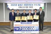 한국현대미술신문 정소영 기자 | 대구 달성군이 안전한 일터 조성에 모범적인 우수 기업을 선정해 인센티브를 지원하는 등 산업재해 예방에 총력을 다하고 있다. 달성군은 대구상공회의소와 공동으로 지난 26일 ‘2025년 달성군 산업안전보건 우수기업 인증서 및 현판 수여식’을 개최하고, 안전한 일터 만들기에 솔선수범한 관내 4개 기업에 인증서와 현판을 전달했다. 올해 우수기업으로 선정된 곳은 ㈜대지메카트로닉스, 미래첨단소재(주), ㈜비엠아이, 일성산업 등 총 4곳이다. 이들 기업에는 인증과 함께, 근로환경 개선을 위한 사업비가 최대 700만 원까지 지원된다. 해당 지원금은 근로시설 및 안전장비 개선 등에 활용될 수 있다. ‘산업안전보건 우수기업 인증사업’은 달성군과 대구상공회의소가 지난 2023년부터 공동 추진해온 사업으로, 산업재해 예방을 위한 민관 협력 모델로 주목받고 있다. 양 기관은 안전하고 건강한 작업환경을 구축하는 기업을 매년 선정해 인증하고, 인센티브를 제공해 오고 있다. 최재훈 달성군수는 “경제가 침체돼 어려운 이때에도 안전한 일터 만들기에 앞장서 온 기업인 여러분의 노고에 감사드린다”며 “