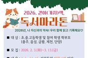 한국현대미술신문 신정은 기자 | 충청북도교육청 직속기관 중원교육문화원은 언제나 책봄 정책을 활성화 하기 위해 2월 3일부터 3월 13일까지 북부권 초‧중‧고등학생과 학부모를 대상으로 '2026년 같이(가치)책 독서마라톤' 참여자를 모집한다. 중원교육문화원은 3월 말 발대식을 시작으로 오는 12월까지 독서마라톤을 본격 운영할 계획이다. '2026년 같이(가치)책 독서마라톤'은 학생들이 매월 읽기와 기록, 성찰 활동을 반복하며 꾸준한 독서 습관을 기를 수 있도록 운영되는 프로그램이다. 참가자들은 다채움 플랫폼 ‘채움책방’을 활용해 시간과 장소에 관계없이 독서 활동에 참여할 수 있으며, 누적 독서량에 따라 12월에 구간별 완주증서와 기념품을 받게 된다. 참여 기준은 매월 1편 이상, 총 8회의 독후감상문을 업로드하는 것으로, 학년별 독후감상문 서식과 글자 수 기준에 따라 독서 권수가 인정된다. 독서 완주구간은 ▲소크라테스(8~16권) ▲플라톤(17~34권) ▲아리스토텔레스(35권 이상)으로 구분된다. 참여를 희망하는 학생은 중원교육문화원 누리집에서 신청할 수 있으며, 기타 문의