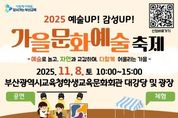 한국현대미술신문 정소영 기자 | 부산광역시교육청 유아교육진흥원은 오는 11월 8일 오전 10시부터 오후 3시까지 학생교육문화회관에서 부산 시내 3~5세 유아와 동반 가족 3,000여 명을 대상으로 ‘예술UP! 감성UP! 가을문화예술축제’를 개최한다. 이번 축제는 가을의 정취 속에서 공연과 체험, 자연이 어우러진 다채로운 프로그램을 통해 유아와 가족이 함께 즐기며 따뜻한 추억을 쌓을 수 있도록 마련했다. 축제는 총 4개 마당으로 구성했다. 공연마당에서는 동요와 함께하는 현악 클래식 연주, 미술 기법을 활용한 드로잉 공연 등 눈과 귀를 사로잡는 무대가 펼쳐지고, 예술창의마당에서는 자개 열쇠고리 만들기, 컵 받침 만들기, 만화경 만들기 등 예술과 과학이 결합된 체험을 통해 유아의 상상력과 창의성을 키운다. 자연마당에서는 가을 북 피크닉과 중고도서 나눔 행사가 열려 책과 자연이 어우러진 여유로운 시간을 제공하며, 어울림마당에서는 에어바운스, 전통·다문화 놀이, 먹거리 나눔 등 온 가족이 함께 참여하고 소통하는 체험형 프로그램이 운영된다. 공연 관람은 사전 신청제로 진행한다. 10월 29일 오전 9시부터 11월 6일 오