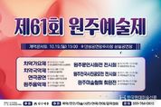 한국현대미술신문 원진 기자 | (사)원주예총은 오는 10월 16일부터 11월 2일까지 원주시 댄싱공연장 주차장 상설공연장과 치악예술관 전시실 등 원주 전역에서 시민과 함께하는 ‘제61회 원주예술제’를 개최한다. 올해로 61회를 맞이한 원주예술제는 지역 예술인들의 창작열과 예술혼이 어우러진 종합 예술축제로, 예술로 하나 되는 시민 화합의 장이자 원주의 대표 문화예술 축제로 자리매김하고 있다. 축제 기간 동안 원주예총 산하 7개 협회가 참여하여 사진, 미술, 문인, 연극, 국악, 음악 등 다채로운 전시와 공연을 선보이며, 원주의 가을을 풍성한 예술의 향기로 물들일 예정이다. 특히 개막식에서는 국악협회 공연을 시작으로 시낭송, 바이올린 연주, 대금과 발레, 전통·현대무용, 금관5중주, 퓨전국악팀 ‘작심’의 무대까지 다채로운 프로그램이 이어진다. 마지막 순서로는 출연자와 관객이 함께 노래를 부르며 예술로 하나 되는 특별한 순간을 선사할 예정이다. 박혜순 문화예술과장은 “61년의 역사와 전통을 이어온 원주예술제는 예술인과 시민이 함께 만들어가는 축제이자, 원주의 문화적 저력을 보여주는 상징적인 행사”라며,
