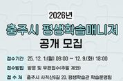 한국현대미술신문 신정은 기자 | 충주시가 주민의 근거리 학습권 보장과 지역 특성에 맞는 평생학습 실현을 위해 ‘2026년 충주시 평생학습매니저’를 공개 모집한다고 28일 밝혔다. 이번 모집은 읍면동 평생학습센터를 중심으로 지역 곳곳의 학습 현장을 지원하고 시민 참여형 평생교육 기반을 강화하고자 마련됐다. 지원 자격은 충주시 주민등록자로서, 충주시에서 운영한 △충주시 평생학습매니저 양성과정 △읍면동 평생학습매니저 양성과정 △행복학습매니저 양성과정 △2025 평생학습매니저 양성과정(건국대 RISE 협업) 중 1개 이상을 수료해야 한다. 선발된 평생학습매니저는 2026년 1월부터 12월까지 읍면동 평생학습센터 프로그램 운영 및 모니터링, 지역 주민 맞춤형 학습 기획, 학습자 상담 및 만족도 조사, 평생교육 주요 사업 및 행사 운영 지원, 홍보 활동 등 현장에서 다양한 역할을 맡는다. 모집 기간은 12월 1일부터 9일까지 총 15명을 선발하며, 접수는 충주시 평생학습관(충주시 사직산6길 20) 방문 또는 우편 제출로 하면 된다. 선발 절차는 서류 및 면접 심사로 진행되며, 최종 결과는 12월