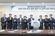 한국현대미술신문 배윤섭 기자 | 시흥시인재양성재단은 지난 3월 19일 시청 다슬방에서 한국공학대학교와 지역인재 장학사업 추진을 위한 업무협약을 체결하고, 산학협력단 내 입주기업들이 조성한 장학기금 총 2,510만 원의 기탁식을 진행했다. 이날 행사에는 (주)릴리아 솔루션, 피티에스와이에스, 메타리버테크놀러지, 엠씨테크닉스, 태성 등 5개 입주기업 대표를 비롯해 시 관계자와 한국공학대학교 총장 등 10여 명이 참석해 지역 인재 양성을 위한 협력 의지를 다졌다. 이번 협약은 한국공학대학교 제2캠퍼스(리서치파크) 산학협력관 내에 공정혁신 시뮬레이션센터와 협력하는 입주기업들이 자발적으로 조성한 재원을 지역사회에 환원하고, 이를 관내 초중고 학생 대상 장학사업으로 연계하기 위해 마련됐다. 기탁금은 시흥시 미래인재 양성을 위한 장학 재원으로 활용되며, 재단은 기탁 취지에 맞게 재원을 투명하고 공정하게 관리ㆍ운영할 계획이다. 양 기관은 ▲지역인재 발굴 및 장학지원 확대 ▲산학협력 성과의 지역사회 환원 체계 구축 ▲대학·기업·지역 간 지속 가능한 상생협력 모델 확산 등을 위해 협력하기로 했다. 임병택 시흥시장은