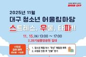 한국현대미술신문 정소영 기자 | 대구광역시는 11월 15일 오후 1시, 2.28기념중앙공원에서 올해를 마무리하는 ‘청소년 어울림마당’을 개최한다. 특히 이번 행사에서는 수능을 마친 수험생들을 위한 특별한 선물도 준비돼 있다. 대구시가 주최하고 대구행복진흥사회서비스원 청소년활동진흥센터가 주관하는 이번 행사는 청소년들의 자유롭고 창의적인 문화 활동의 장을 마련하기 위해 청소년기획단이 직접 기획하고 운영한다. 이번 11월 청소년 어울림마당은 올해 다섯 번째이자 마지막 행사로, 수험표를 지참한 수험생들에게 특별 선물을 제공하는 이벤트와 함께 다양한 무대 공연과 체험 부스를 운영한다. 오후 1시부터 시작되는 무대 공연에서는 지역 청소년들로 구성된 밴드 무대부터 댄스 퍼포먼스, 비트박스 등 총 18개 팀이 다양한 장르의 공연을 선보일 예정이다. 체험 부스에서는 열전사 사진 체험, 마이디폼블록·쉐이커키링 만들기 등 다양한 활동과 함께 컵케익 데코, 논알콜 칵테일 만들기 등 재밌는 먹거리 체험도 제공된다. 부스에 참가하면 기념품도 받을 수 있다. 박윤희 대구광역시 청년여성교