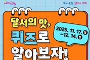 한국현대미술신문 정소영 기자 | 대구 달서구는 11월 17일부터 12월 14일까지 4주간‘달서의 맛, 퀴즈로 알아보자!’ 온라인 퀴즈 이벤트를 진행한다. 이번 이벤트는‘달서맛나’,‘달토기빵’등 달서구를 대표하는 음식 브랜드의 인지도를 높이고, 주민들이 즐겁게 참여할 수 있는 온라인 퀴즈 형식의 참여형 캠페인으로 마련됐다. 퀴즈는 달서맛나 홈페이지 내 이벤트 페이지에서 누구나 참여할 수 있으며, 4주 동안 매주 서로 다른 달서구 대표 음식 브랜드를 주제로 진행된다. 문항은 주민들이 쉽게 풀 수 있는 상식형 퀴즈로 구성되어 있어, 남녀노소 누구나 부담 없이 참여할 수 있다. 각 회차 종료 후에는 추첨을 통해 매주 70명씩 총 280명에게 편의점 모바일 상품권(5,000원권)을 증정하며, 당첨자 명단은 달서맛나 홈페이지를 통해 공개될 예정이다. 이태훈 달서구청장은 “이번 온라인 퀴즈 이벤트가 달서구 대표 음식 브랜드의 인지도 확산은 물론, 지역 맛집과 향토 음식에 대한 주민들의 관심을 높이는 계기가 되길 기대한다”며 “앞으로도 주민 참여를 확대하고 지역경제 활성화에 도움이 되는 다양한 홍보