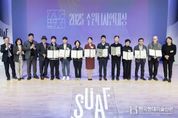 한국현대미술신문 배윤섭 기자 | 수원특례시는 10월 30일 정조테마공연장에서 2025 수원디자인대상 시상식을 열고, 다니엘열방학교 등 5개 작품을 시상했다. 수상작은 건축물 분야 다니엘열방학교(영통구 원천동)·원더풀 우만(팔달구 우만동), 인테리어 분야 수원 지관서가(팔달구 우만동), 공공공간 분야 영흥숲공원(영통구 영통동)이다. 복합문화공간 111CM는 공공공간 분야 특별상(한국디자인단체총연합회장)을 받았다. 수원시가 주최·주관하고 (사)한국디자인단체총연합회가 후원하는 ‘수원디자인대상’은 디자인 자산을 확보하고, 문화가치를 창출하기 위해 우수한 디자인을 선정해 시상하는 것이다. 전문가로 구성된 작품 심사위원회가 수상작을 선정했다. 이날 시상식은 2025 수원도시건축문화제 행사 중 하나로 진행됐다. 수원시는 10월 29일부터 11월 1일까지 정조테마공연장, 수원시미디어센터, 팔달문화센터 등에서 ‘Grayfield; 회색공간’를 주제로 2025 수원도시건축문화제를 연다. 시상식 후 ‘도시의 여백, 가능성을 설계하다’를 주제로 열린 토크콘서트는 홍경구(단국대 건축학부 교수) 수원시 총괄계획가의 기조강연