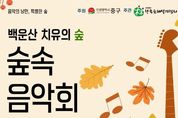 한국현대미술신문 박재남 기자 | 인천시 중구는 문화와 나들이의 계절 가을을 맞이해 오는 11월 1일 오후 2시부터 백운산 치유의 숲(운남동 산120-1)에서 ‘백운산 치유의 숲 숲속음악회’를 개최한다. 이번 음악회는 인천 중구가 ‘2025년 산림치유 프로그램 운영 사업’의 일환으로 올해 처음 선보이는 행사다. 특히 숲속에서 ‘음악회’와 ‘전문 산림치유 프로그램’을 함께 즐길 수 있는 것이 특징이다. 행사에서는 스카이드림기타앙상블, 아리솔 우쿨렐레 앙상블, 송월장로교회 브라스코이노니아, 경기도 무형유산 제38호 풀피리 이수자의 무대 등 다양한 단체의 재능기부로 진행된 음악 문화 공연이 펼쳐질 예정이다. 또한, 문화 공연 사이사이마다 온몸 스트레칭, 명상, 건강 박수 등 전문 산림치유지도사와 함께하는 다채로운 ‘힐링·건강 프로그램’이 준비돼 있어 축제를 더욱 풍성하게 만들 전망이다. 행사를 주최한 한국숲해설가협회 관계자들은 “첫 축제이니만큼, 많은 시민이 함께해 주셨으면 좋겠다”라며 “산림치유 프로그램에도 시민들의 많은 관심과 참여를 바란다”라고 전했다. 한편, 인천 중구 운