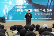 한국현대미술신문 원진 기자 | 원강수 원주시장은 지난 4일 국립강릉원주대학교 원주캠퍼스에서 강원원주산학융합지구 소속 학부생 160여 명을 대상으로 ‘변화의 중심에서 새로운 미래를 여는 도시, 원주’라는 주제로 특별 강연을 진행했다. 이번 특강은 미래 첨단산업을 중심으로 변화하는 원주의 산업 생태계를 소개하고, 지역 청년들과 직접 소통하기 위해 마련됐다. 정보통신공학과, 멀티미디어공학과, 자동차공학과, 의료기기융복합과 학생들을 대상으로 전공과 연계된 산업 현황과 기술 흐름, 향후 원주시의 발전 방향 등을 폭넓게 제공했다. 원강수 시장은 강연에서 미래 첨단산업이 서로 연계·확장되면서 원주가 융합형 산업도시로 자리매김하고 있다고 강조했다. 특히 AI 융합 산업, 첨단의료복합단지 조성, 반도체 산업 생태계 구축, 미래 모빌리티 산업 육성, 드론 산업 기반 조성 등 주요 사업을 학생들의 전공 분야와 연결해 설명함으로써 지역인재들이 자신의 진로와 미래를 구체적으로 그려볼 수 있도록 도왔다. 앞으로도 원주시는 대학 및 산학융합원과 협력 방안을 적극 모색하고, 미래 전략사업을 차질 없이 추진해 청년들이 지역에서 성장할 수 있