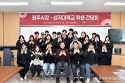 한국현대미술신문 원진 기자 | 원주시는 지난 4일 상지대학교 동악관에서 학생들과 간담회를 개최했다. 간담회에는 원강수 시장과 임재영 총학생대표를 비롯해 관계 공무원과 상지대 학생들이 참석했다. 이번 간담회는 대학을 직접 찾아 학생들이 생활 속에서 겪는 애로사항 등 현실적인 목소리를 듣기 위한 소통의 장으로 마련됐다. 원강수 시장은 시정 전반의 주요 정책을 직접 설명하며 학생들의 관심과 이해를 높였다. 이 자리에서 학생들은 △상지대 경유 시내버스 노선 증설 △수도권과 지역의 임금 격차 해소 △상지대 학과와 원주시 산업 연계를 통한 일자리 창출 △소금산그랜드밸리 등 관광지의 대학생 입장료 감면 등을 건의했다. 원주시는 제기된 건의 사항을 관련 부서와 적극 검토하고, 우량 기업 유치 등을 통해 문제 해결에 나설 방침이다. 원강수 시장은 “지역의 미래를 이끌어갈 대학생들이 원주의 든든한 일꾼이 될 수 있도록 앞으로도 적극적으로 소통하고 지원을 아끼지 않겠다”라고 말했다.