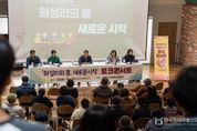 한국현대미술신문 신정은 기자 | 충북 증평군이 25일 도안창고플러스에서 ‘화성리의 봄, 새로운 시작’ 토크콘서트를 열고, 화성리지구의 ‘농촌공간정비사업’선정 과정과 향후 재생 방향을 주민들과 공유했다. ‘29년의 흉물, 이제는 희망의 공간으로!’라는 부제로 열린 이번 행사는 윤모아파트 정비사업이 본격적인 궤도에 오른 가운데, 군과 주민이 함께 다음 단계를 점검하는 첫 공식 소통의 장으로 마련됐다. 이날 행사에는 이재영 군수를 비롯해 주민대표, 청년, 지역주민 등 100여 명이 참석했다. 군수 인사말과 주민대표의 소감을 시작으로, 공모 선정 과정과 행정적 준비 절차를 담은 영상을 함께 시청하며 윤모아파트 정비 추진 과정을 이해하는 시간을 가졌다. 본행사인 토크콘서트 ‘화성리, 우리 마을의 내일을 말하다’에서는 군수와 주민대표, 청년대표, 전문가가 패널로 나서 △방치의 장기적 영향 △재생 이후 공간 활용 방향 △주민 참여의 구조 등을 놓고 의견을 나눴다. 이어진 즉문즉답에서는 이재영 군수가 직접 철거 일정, 보상 절차, 향후 설계 방향 등 주민들의 질문에 답하며 현장의 궁금증을 해소했다.