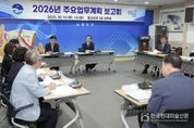 한국현대미술신문 신정은 기자 | 음성군은 지난 13일부터 14일까지 이틀간 군청 상황실에서 2026년도 주요업무계획 수립을 위한 보고회를 개최했다. 이번 보고회는 부서장이 부서별 주요 정책사업과 특수 시책을 보고하고, 사업의 추진 상황과 문제점을 점검해 내년도 군정 운영 방향을 심도 있게 논의하는 자리로 마련됐다. 회의를 주재한 조병옥 군수는 정부 정책 방향과 지역 특성을 접목해 군민이 체감할 수 있는 혁신 사업을 구체화하는 데 목표를 두고, AI 신기술 활용 사업 등 새 정부 123대 국정과제에 연계한 맞춤형 사업 발굴을 주문했다. 또한 중부내륙철도 지선 제5차 국가철도망 구축계획 반영, 공공기관 2차 이전 등 민선 8기 등의 역점사업의 동향을 살피고, 음성군 100년 미래를 결정할 핵심사업이 정부 계획에 최종 반영될 수 있도록 총력을 다할 것을 당부했다. 이어 그린에너지 스마트농업타운 투자선도지구 조성사업, 금왕읍·맹동면·대소면 농촌중심지활성화 사업, 감곡면 도시재생 인정사업 등 대규모 사업 및 주민 관심도가 높은 국립소방병원 건립과 청년농촌보금자리 조성 등 지역균형발전 전략사업의 추진 상황 등
