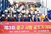한국현대미술신문 박재남 기자 | 인천 중구의회는 12월 16일, 중구 평생학습관에서 개최된 제3회 중구사랑 글짓기 대회 시상식에 참석해 수상자들을 축하했다고 밝혔다. 이날 시상식에는 강후공 의원이 참석해 수상자들에게 축하 인사를 전하고, 참여 학생들과 관계자들을 격려했다. 강후공 의원은 “이번 대회를 통해 지역에 대한 이해와 자긍심이 자연스럽게 형성되고, 올바른 가치관과 표현력을 기르는 계기가 되길 바란다”라며 “중구의회도 지역 정체성과 공동체 의식을 높이는 다양한 문화·교육 활동을 지속적으로 응원하겠다”라고 밝혔다. 또한 앞으로도 주민 참여형 문화·교육 행사를 적극 지원하고, 지역사회와 소통하는 의정활동을 이어갈 계획이라고 말했다.