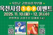 한국현대미술신문 신정은 기자 | 옥천군이 연말맞이 고향사랑기부제 활성화를 위해 특별 이벤트를 진행한다. 이번 이벤트는 옥천의 발전을 위해 마음을 보내주는 기부자들에게 감사를 전하고, 다른 기부제와 차별화되는 혜택을 홍보하는 등 더 많은 사람들이 제도 취지에 공감하며 참여할 수 있도록 마련됐다. '옥천사랑369 이벤트' 참여 방법은 11월 10일부터 12월 31일까지 고향사랑e음, 은행 어플(국민, 기업, 신한, 하나, 농협) 또는 전국 농협은행(방문)에서 옥천군 또는 지난 10월 모금을 개시한 특정사업 '옥천군 예체능 꿈나무 지원'에 10만 원 이상 기부하고 답례품 선택까지 완료하면 된다. 기간이 종료되면 예산 소진 시까지 30, 60, 90, 120, 150...번째 답례품 주문자에게는 기본혜택(세액공제, 답례품) 외 추가 혜택으로 본인이 선택한 답례품을 하나 더 제공한다. 기부자가 늘어날수록 추가 혜택 수혜자도 확대되기때문에 연말 기부 활성화에 기여할 것으로 전망된다. 고향사랑기부제는 세액공제 혜택과 함께 지역 특산품도 답례로 받을 수 있어 지역도 돕고 개인에게도 이득이 되는 제도다