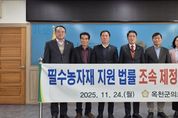 한국현대미술신문 신정은 기자 | 충북 옥천군의회는 24일 열린 제329회 제2차 정례회 제1차 본회의에서 필수농자재 지원법률의 조속한 제정을 촉구하는 건의안을 만장일치로 채택했다. 통계청 자료에 따르면, 2024년 농가구입가격지수*는 2020년 대비 20.1% 상승했으며, 특히 재료비는 32.5% 급등했다. 반면 농업소득은 957만 원에 불과해 농가 경영난이 심화되고 있다. *농가가 영농에 필요한 각종 자재, 기계, 공산품 등을 구입하는 평균 비용을 산정한 물가지수 현재 ‘필수농자재 지원법’은 국회 농림축산식품해양수산위원회를 통과했으나, 본회의 의결과 시행령 제정 등 후속 절차가 남아있어 실제 시행까지는 상당한 시일이 소요될 전망이다. 이날 건의안에서는 ▷입법 절차의 조속한 완료 및 시행령 제정 등 후속조치 신속 추진 ▷충분한 국비 확보와 지속가능한 중장기 재정 지원방안 마련 ▷적기 지원금 지급과 현장 맞춤형 지원 등 실효성 있는 집행체계 구축을 정부와 국회에 강력히 촉구했다. 추복성 의원은 “법률이 제정되더라도 시행령 제정 등 후속 절차로 인해 실제 지원까지 최소 수개월이 소요될 수 있다”며, “