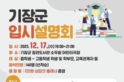 한국현대미술신문 정소영 기자 | 기장군은 오는 17일 정관도서관 소두방 어린이극장에서 관내 수험생과 학부모를 대상으로 ‘2027학년도 대학입시 설명회’를 개최한다고 16일 밝혔다. 이번 설명회는 변화하는 대입제도 속에서 학생과 학부모가 신뢰도 높은 최신 입시 정보를 제공받을 수 있도록 지원하고, 지역 교육 경쟁력 강화를 위해 마련했다. 입시 전문 교육기관인 ㈜종로아카데미와 연계해 ‘1대1 맞춤형 진로·진학 컨설팅 지원사업’의 일환으로 진행된다. 이날 강연은 EBS 진학상담 대표 강사이자 종로학원 입시연구소 외부패널로 활동 중인 정동완 강사와 교육특구사업 자기주도 학습 센터장 황광희 강사가 강연자로 나서, ‘고교학점제!120% 제대로 활용하는 입시특강’,‘방학동안 어떻게 공부할것인가, 학습법강의’를 주제로 진행된다. 특히 최근 2028 대입개편 논의 및 수능·학생부 평가 방식 변화 등 빠르게 변화하는 교육 환경에 따라, ▲학생부 전형 대비 전략 ▲정시 학습 로드맵 ▲대학별 전형 변화 분석 ▲등급대별 맞춤 전략 ▲지역 학생이 반드시 알아야 할 최신 입시 정보 등 입시 전략 수립에 실적적으로 필요한 내용으로 구성됐다