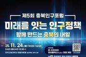 한국현대미술신문 신정은 기자 | 충북도는 24일, 한국교원대학교 청람아트홀에서 ‘미래를 잇는 인구정책, 함께 만드는 충북의 내일’을 주제로'제5회 충북인구포럼'을 개최했다고 밝혔다. 올해로 5번째를 맞는 충북인구포럼은 저출생·고령화 심화로 인구감소 가속화 등 인구위기에 따른 대응 전략을 충청북도, 충청북도교육청, 한국교원대학교가 함께 모색하기 위해 마련됐다. 이번 포럼에는 김영환 충청북도지사, 차우규 한국교원대학교 총장, 김태형 충청북도교육청 부교육감, 노금식 충청북도의회 인구소멸대응 대책 특별위원회 위원장을 비롯해 도·시군 및 교육 관계자, 연구자, 도민 등 200여 명이 참석했다. 충북은 2025년 상반기 출생아 수 증가율 12.8%로 전국 1위를 기록하는 등, 전국적 저출생 심화 속에서도 상승 추세를 이어가고 있다. 이에 충북도는 결혼·출산 친화환경 조성과 출산·양육 지원정책 강화는 물론, 교육·지역 활성화 정책과 연계한 중장기 인구정책 패러다임 전환을 추진하고 있다. 이번 포럼에서는 이러한 정책 방향을 뒷받침하는 연구 결과를 공유하는 다양한 발제와 토론이 진행됐다. 첫 번째 발