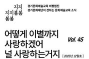 한국현대미술신문 배윤섭 기자 | 경기도와 경기문화재단이 12월을 맞아 올해를 마무리하는 문화예술교육 비평웹진 〈지지봄봄〉 45호를 발행했다. ‘어떻게 이별까지 사랑하겠어, 널 사랑하는 거지’를 제목으로 한 이번 호는 현장의 지속가능성, 행정 구조의 과제, 비평의 역할 등 문화예술교육이 직면한 주요 쟁점을 깊이 있게 다룬다. 먼저, 기획자 유모라의 글 '예술인으로 존재하고 연대하기 위하여 - 홍우주 예술학교 A.L.T.O. 탄생기'는 11년 차 홍우주사회적협동조합이 ‘홍대앞 정신’을 잇기 위해 시작한 ‘예술학교 A.L.T.O.’의 배경과 의미를 조명한다. 파일럿 프로그램을 통해 확인한 연대의 가능성과 함께, 홍우주가 그리는 지속 가능한 지역 문화예술 생태계를 탐색한다. ‘게릴라노동자들’의 대담 '문화재단 실무자 탈출기 - 『나라를 위해서 일한다는 거짓말』 함께 읽기'에서는 전 문화재단 실무자들이 공직사회의 조직 문화와 업무 환경을 돌아본다. 노한동의 책을 매개로 공공 조직의 현실을 비판적으로 되짚고, 여전히 현장에서 고군분투하는 실무자들에게 연대와 응원의 메시지를 전한다. 광주광역시 청소년삶디자인센터 김소연 기획