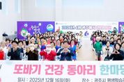 한국현대미술신문 배윤섭 기자 | 광주시보건소는 16일 65세 이상 어르신을 대상으로 운영 중인 ‘또바기 건강동아리 한마당 축제’를 성황리에 마무리했다. 이번 축제는 방세환 시장을 비롯해 또바기 건강동아리 어르신 100여 명이 참석한 가운데 한 해 동안 건강동아리 활동에 참여해 온 어르신들의 노력을 되돌아보고 성과를 공유하기 위해 마련됐다. 행사장은 어르신들의 뜨거운 호응 속에 활기차고 따뜻한 분위기로 가득 찼다. 행사는 ▲1부 전통 타악 식전 공연(꽹과리·소고)과 미술작품 전시 관람 ▲2부 2025년 건강동아리 활동 발표 및 팀별 놀이마당 등 어르신들의 적극적인 참여와 소통을 중심으로 구성됐다. 특히, 꾸준히 걷기 활동과 운동 프로그램에 참여해 온 어르신들의 1년간 활동 영상을 함께 시청하며 건강을 위해 함께 땀 흘린 시간을 추억하는 뜻깊은 시간이 이어졌다. 이날 함께 진행된 또바기 건강동아리 미술반 작품 전시는 어르신들의 예술적 역량을 시민들과 공유하는 자리로 마련돼 참여 어르신들에게 감동과 성취감을 동시에 선사했다. 미술반 작품 전시는 15일부터 31일까지 평생학습관 2층 전시실에서 진행되며 광