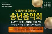 한국현대미술신문 신정은 기자 | 부여군은 (사)부여사랑합창단 주최로 오는 12월 13일 오후 3시, 국립부여박물관 사비마루 공연장에서 아름다운 음악으로 따뜻한 감동을 채울 '2025년 부여군민과 함께하는 송년 음악회'가 개최된다고 밝혔다. 이날 음악회는 (사)부여사랑합창단의 ‘새야새야’, ‘섬집아기’ 합창 공연 등과 함께 ▲유채훈(라포엠), ▲에클레시아(5인조 앙상블) 등 초대 가수를 초청하여 한해를 아름답게 마무리하는 화려하고 감동적인 공연이 펼쳐질 예정이다. 부여군 관계자는 “숨 가쁘게 지나갔던 지난 2025년을 되돌아보고 새해맞이를 준비하는 연말, 아름다운 음악 공연을 통해 일상의 힐링이 되길 바란다.”라고 말했다.