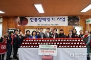 한국현대미술신문 신정은 기자 | 한국여성농업인 부여군연합회(회장 임현숙)는 부여군 은산면 거전리에 소재한 부여임업기술현장교육장에서 ‘전통 장, 맥 잇기’ 행사를 진행했다고 11일 밝혔다. ‘전통 장, 맥 잇기’ 사업은 우리나라의 장을 직접 담가 우리나라 전통 장의 맥을 잇는 뜻깊은 행사이다. 이날 행사에서는 한국여성농업인 부여군연합회 회원 40명이 참가하여 직접 장을 담그고 300통의 고추장을 부여군 취약계층에 기부했다. 한국여성농업인 부여군연합회의 임현숙 회장은 “본 행사는 약 10년간 이어져 온 전통 있는 행사로 매년 우리나라 전통 장을 직접 담가 어려운 이웃에게 나누어 줄 수 있어 매우 기쁘게 생각한다.”라고 말했다. 부여군 박정현 군수는 “매년 이렇게 뜻깊은 행사를 이어오고 있는 한국여성농업인 부여군연합회의 임현숙 회장님을 비롯한 임·회원분들께 깊은 감사의 말씀을 전하며 앞으로도 이러한 뜻깊은 행사가 명맥을 이어갈 수 있도록 적극 지원하겠다.”라고 밝혔다. 한편, 한국여성농업인 부여군엽합회는 ‘여성농업인 건강 운동 교실 운영’ 등 여성농업인들의 복지 향상을 위한 활동을 활발히 하
