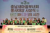 한국현대미술신문 신정은 기자 | 김태흠 충남도지사는 27일 도청 문예회관에서 열린 제3회 충남새마을부녀회 봉사대상 시상식에 참석, 지역사회를 위해 헌신해온 부녀회장들을 격려했다. 충남새마을회와 충남새마을부녀회가 주최·주관한 이번 행사에는 김 지사와 정광섭 도의회 부의장, 강승규 국회의원, 김정임 새마을부녀회 중앙연합회장, 박숙희 충남새마을부녀회장, 시군 새마을부녀회장 등 800여 명이 참석했다. 행사는 표창 수여, 우수사례 발표, 약속문 낭독, 기념촬영 등의 순으로 진행했다. 표창 수여에서 대상은 천영옥 논산시 채운면 새마을부녀회장이 받았다. 천 회장은 2015년부터 11년 동안 채운면 새마을부녀회장을 역임하며, 독거노인 480세대에 밑반찬을 제공하고, 부녀회원과 독거노인 간 1대 1 결연을 통해 청소와 빨래 봉사 등을 꾸준히 이어올 수 있도록 이끌어온 공로를 인정받으며 이번 영예를 안았다. 채운면 부녀회는 또 매년 120세대에 김장김치와 연탄을 지원하고, 11년 동안 헌옷을 수거·판매해 수익금 전액을 취약계층에 기부하는 등 공동체 봉사에 헌신해왔다. 우수상은 송미경